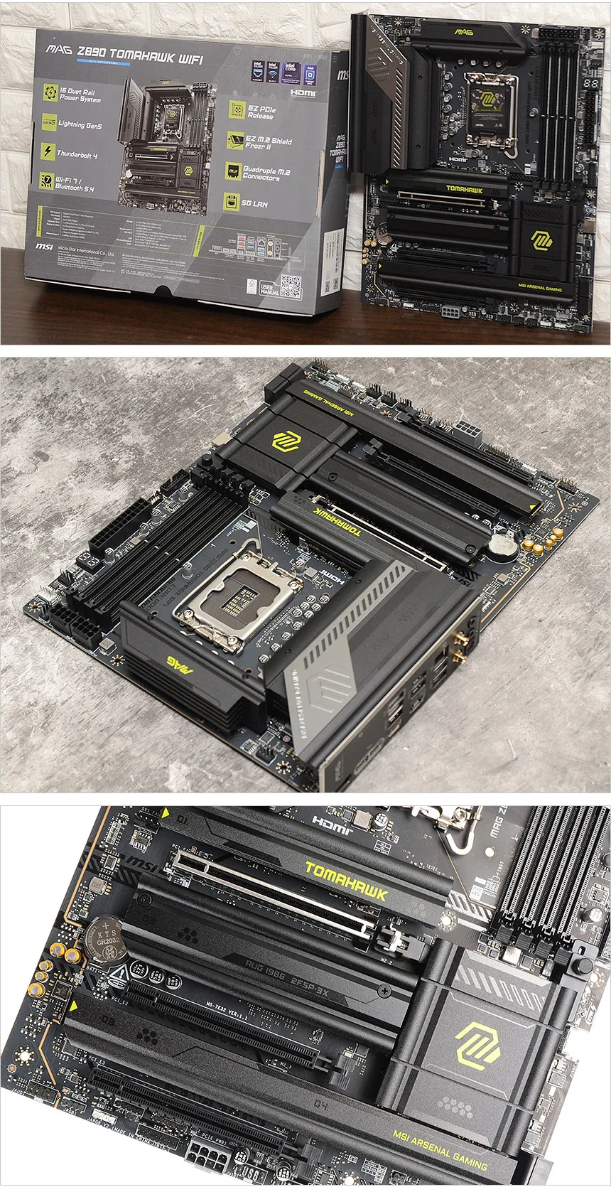 인텔코어 울트라 프로세서를 지원하는 MSI 의 최신 메인보드 MSI MAG Z890 토마호크 WIFI 는 16+1+1 듀엣레인 파워 시스템 전원부를 적용해 높은 성능과 안정성을 경험할 수 있으며 6 레이어 PCB 설계로 더 높은 대역폭과 빠른 전송속도를 구현한다. DDR5 9200+ (OC) 메모리를 지원해 더 강력한 성능을 구현할 수 있고 두꺼운 히트싱크를 적용해 전원부에서 발생하는 열을 빠르게 식혀주며 열이 많은 M.2 SSD가 최대 성능으로 작동할 수 있도록 M.2 쉴드 프로저를 지원한다.