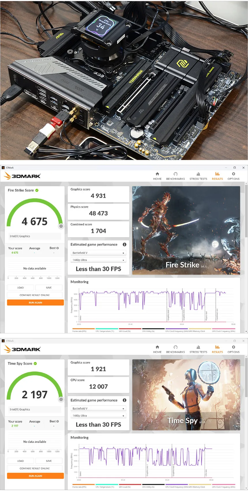 상단에서 내장그래픽의 성능이 향상되었다고 말씀드렸다. 실제로 스코어 상에 변화가 있는지 확인하기 위해 3DMARK를 실행한 모습으로 눈에 띄게 성능이 높아진 것을 확인할 수 있었다. (14700K에서 파스 그래픽 스코어 2906) 아크 내장 그래픽 수준은 아니지만 진일보한 성능으로 LOL 이나 오버워치 2 정도는 부드럽게 실행할 수 있을 것이다.