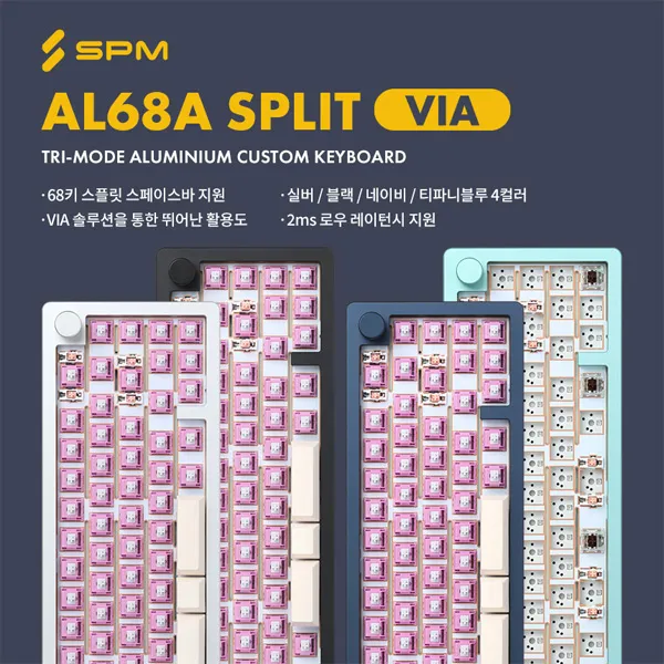 SPM이 스플릿 스페이스바와 완벽한 VIA 솔루션을 지원하는 AL68A 스플릿 키보드와 조약돌75 시리즈의 신규 컬러 제품인 ‘조약돌75 인더스트리얼’을 출시했다.