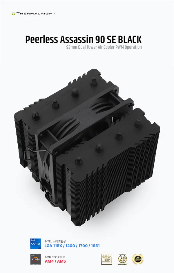 서린씨앤아이가 서멀라이트의 신규 CPU 공랭 쿨러, 피어레스 어쌔씬(Peerless Assassin) 90 SE를 정식 출시했다.