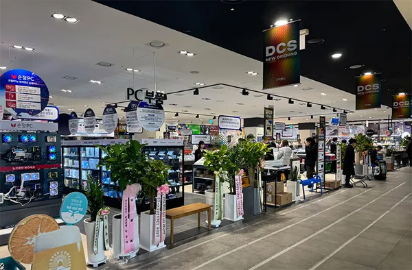 전자랜드 용산DCS는 이번에 새롭게 리뉴얼 오픈을 진행하게 된 컴퓨터는 물론 다양한 생활 공간 제품들을 모아 마련된 종합 쇼핑 공간으로 CPU, PC메모리, 메인보드는 물론 VGA, PC케이스, 파워서플라이와 같은 PC 구성 요소를 이루는 다양한 제품들이 전시, 판매된다.