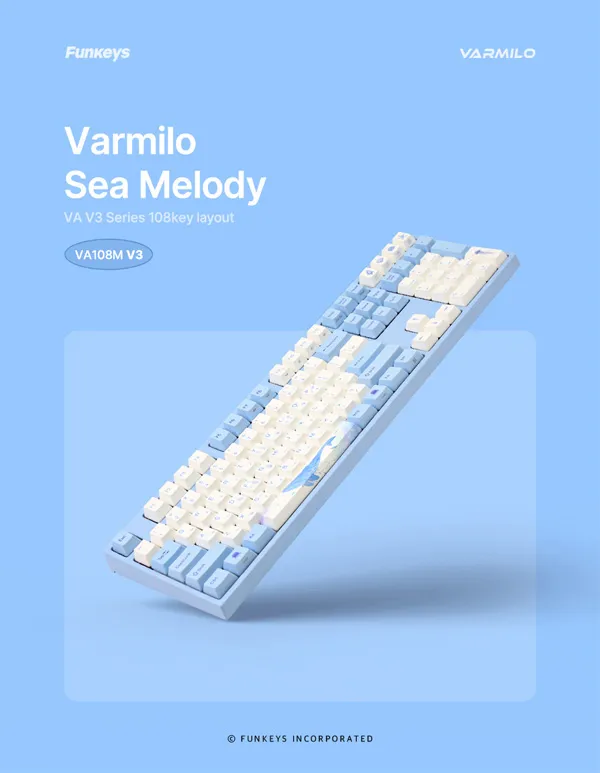 3세대 VARMILO 기계식 키보드는 다크 그레이, 밀키 화이트, SEA MELODY 세 가지 테마와 87키, 108키 레이아웃으로 다양하게 구성되어 사용자의 취향에 따른 데스크테리어를 완성할 수 있으며, 펀키스 공식 스마트 스토어를 통해 구매 가능하다.
