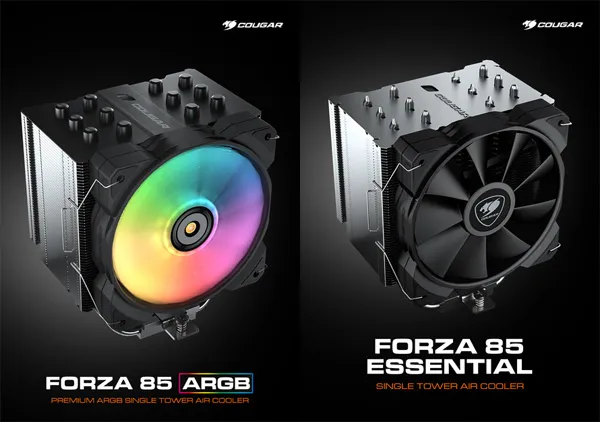 쿠거 포르자 85 시리즈는 히트싱크에 하나의 쿨링팬이 장착되는 싱글 타워 모델이다. 제공되는 쿨링팬은 120mm 규격이며, ARGB 지원 여부에 따라 일반 모델인 포르자 85 에센셜(ESSENTIAL)과 포르자 85 ARGB로 나뉜 2종 모델이 준비되어 있다.