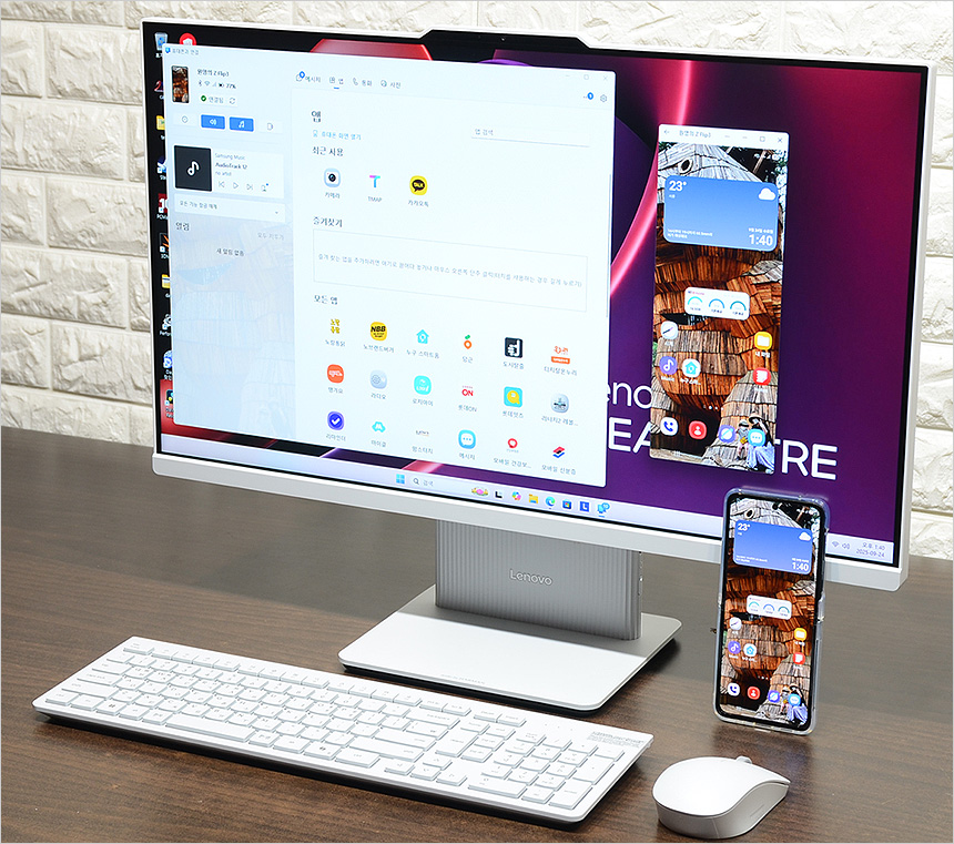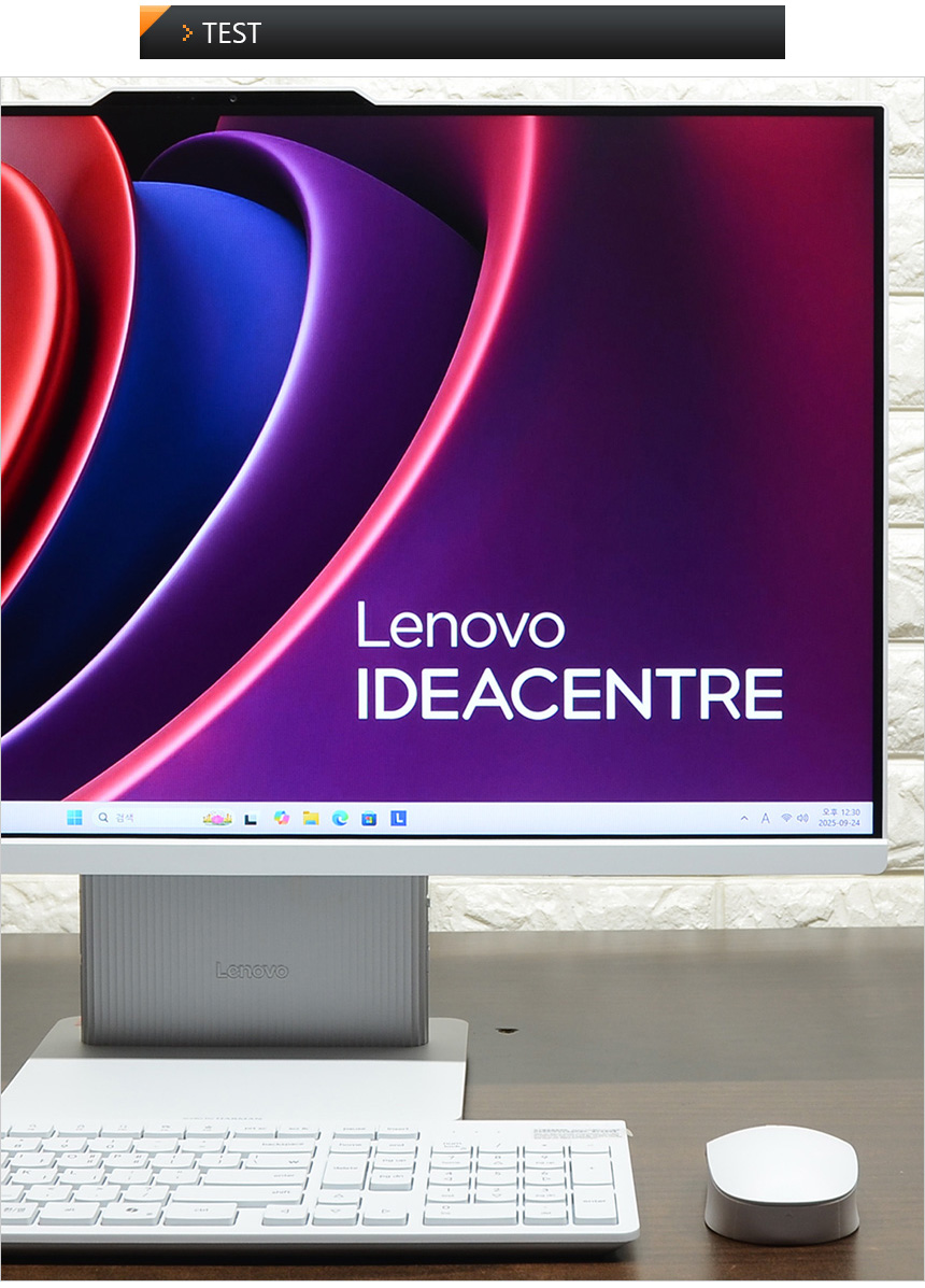 테스트를 위해 책상위에 PC를 설치한 모습으로 27형 대화면을 지원하지만 슬림 베젤로 크기를 최소화 한 모델답게 많은 공간을 차지하지 않았으며 무선 키보드 KIT을 제공해 케이블로 인한 스트레스 없이 PC를 사용할 수 있었다. (전원 케이블은 후면으로 자연스럽게 빼놓을 수 있어 책상을 깔끔하게 관리할 수 있다.) 집이나 사무실, 거실, 매장 등에서 손쉽게 설치해 사용할 수 있을 것이다.