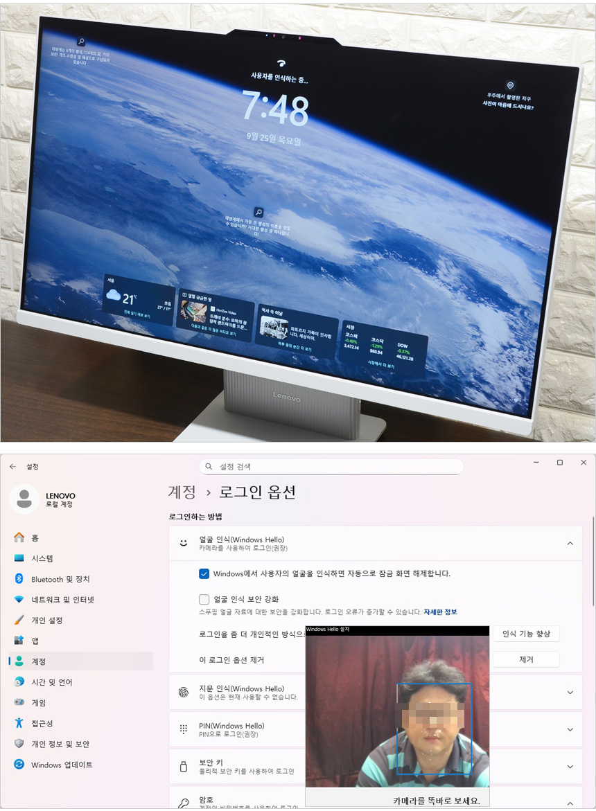 뿐만 아니라 얼굴인식 로그인과 프라이버시 셔터등을 지원해 한차원 높은 보안 설정이 가능하고 Wi-Fi 6 무선랜카드는 물론 무선 키보드 & 마우스가 기본 제공되어 케이블로 인한 스트레스 없이 깔끔하게 책상을 관리할 수 있다. 또한 고화질 웹캠이 장착되어 화상회의 등도 편하게 실행할 수 있으며 HDMI IN과 OUT을 모두 지원해 모니터를 추가하거나 PC를 모니터로 활용할 수 있다.