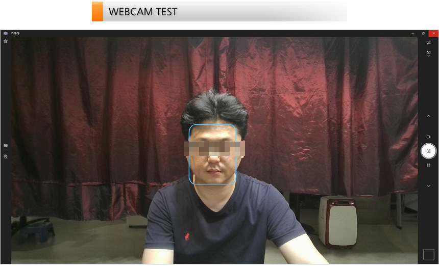 5MP 웹캠의 화질을 확인하고 있는 모습으로 어두운 실내임에도 깔끔한 화질을 보여주었다. 화상회의 등의 용도로 충분히 활용할 수 있을 것이다.