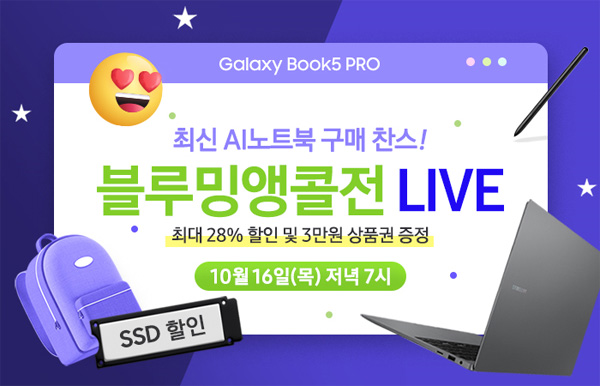 이번 방송에서는 최신 인텔 코어 울트라 시리즈 2와 WQXGA+ Dynamic AMOLED 2X 터치스크린을 탑재한 삼성 갤럭시북5 프로?프로360을 대상으로 다양한 혜택이 제공된다.