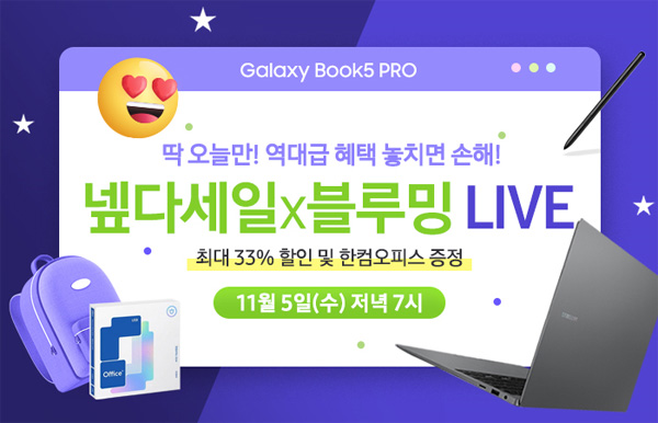 이번 방송에서는 최신 인텔 코어 울트라 시리즈 2와 WQXGA+ Dynamic AMOLED 2X 터치스크린을 탑재한 삼성 갤럭시북5 프로?프로360을 대상으로 다양한 혜택이 제공된다.