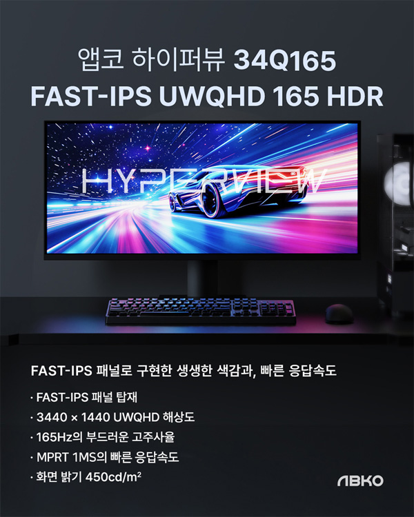 앱코에서 인기 모니터 ‘LPC34Q165D 커브드’ 모니터의 뒤를 잇는 새로운 플래그십 모델 ‘앱코 하이퍼뷰 34Q165 FAST-IPS UWQHD 165 HDR’ (이하 하이퍼뷰 34Q165)를 공식 출시했다. 이번 신제품은 기존의 몰입감을 유지하면서도, 평면 디자인을 채택해 보다 폭넓은 사용자 환경에 어울리는 모니터로 재탄생했다. 생산성부터 게임, 영상 감상까지 아우르는 다재다능한 성능으로, 고화질과 고주사율을 동시에 원하는 사용자들에게 새로운 선택지를 제시한다.