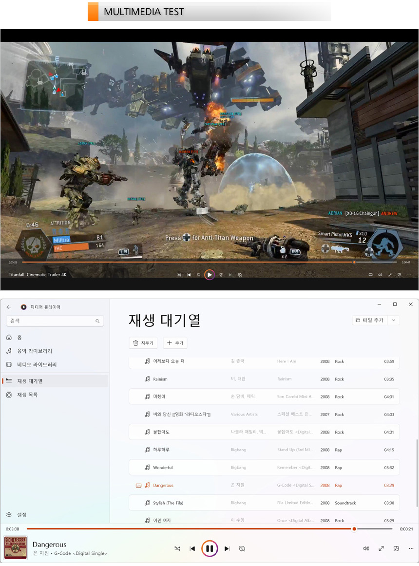 또한 MP3 파일을 이용해 스피커의 사운드 테스트를 진행했는데 우퍼와 트위터를 각각 지원하고 출력도 높아 폭발적인 사운드를 즐길 수 있었다. 특히 돌비 애트모스 까지 지원해 일반 노트북에서는 들을 수 없는 입체감도 경험할 수 있었다. (사운드는 엄지손가락을 올려주고 싶을 정도로 만족스럽다.)