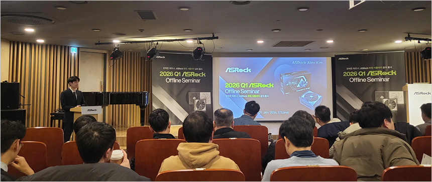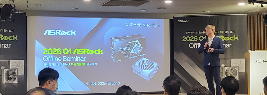 PC 부품 전문 브랜드 애즈락에서 파워 서플라이이 공식 출시를 기념해 오프라인 세미나를 진행했다. 용산 전자랜드 신관2층 랜드홀에서 진행된 이번 세미나에서는 국내 정식 출시될 고급형 파워서플라이 라인업인 타이치와 스틸레전드 제품들의 소개를 비롯해 메인스트림급 메인보드 시장에 특화된 ROCK 시리즈 메인보드에 대한 발표가 있었다.