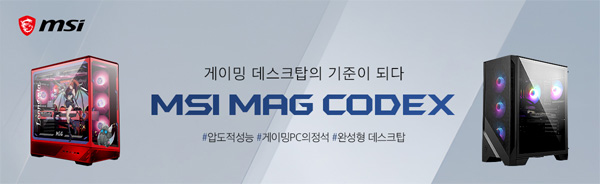 MSI는 오는 3월 16일부터 22일까지 G마켓 ‘빡세일’을 통해 최신 그래픽카드와 프로세서가 탑재된 ‘MSI MAG 코덱스’ 게이밍 데스크탑을 최대 17% 할인된 가격에 선보인다고 밝혔다.