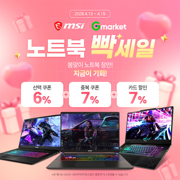 MSI는 G마켓,옥션에서 진행되는 ‘빡세일’ 행사의 일환으로 MSI 노트북을 파격적인 가격에 구매할 수 있는 할인 프로모션을 진행한다고 밝혔다.