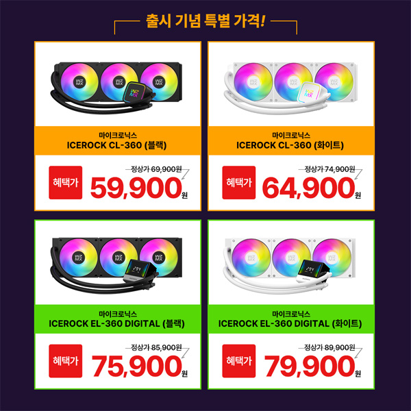 마이크로닉스는 일체형 수랭 쿨러 ‘ICEROCK CL-360’과 ‘ICEROCK EL-360 DIGITAL’을 공식 출시했다.