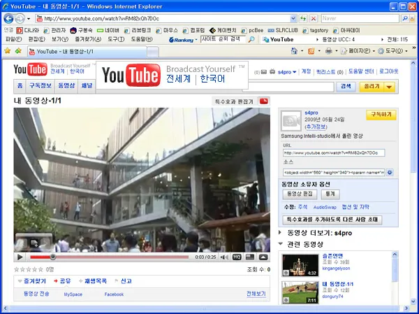 업로드한 동영상이 유튜브 사이트에 정상적으로 등록된 것을 확인할 수 있다. (한국 으로 설정하면 동영상 업로드가 불가능 한 것을 잘 알고 있으리라 생각한다. 필자와 같이 '전세계' 로 국가를 변경할 경우 문제없이 동영상을 업로드 할 수 있다.)