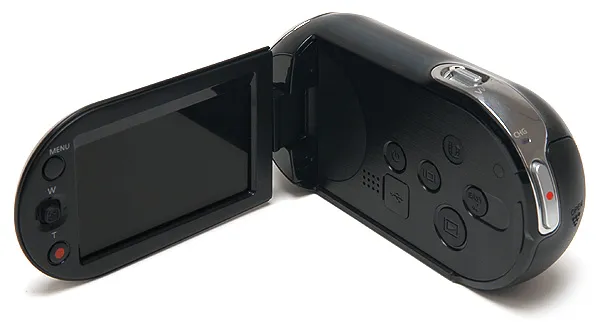 기기의 디자인 또한 필자의 눈길을 사로잡기에 충분하다. R10에서 처음 선보였던 인체공학적인 스타일의 디자인을 계승하고 있으며 그립감도 만족스러울 뿐만 아니라 하이그로시 UV 코팅을 적용하여 고급스러운 느낌도 소흘히 하지 않은 것이 인상적이다. (특히 마감이 무척 만족스러워 저가형의 느낌은 단 1%도 주지 않고 있다. 귀엽고 세련된 포켓 캠코더를 원하는 유저들에게 강력히 추천하고 싶은 제품이다.)