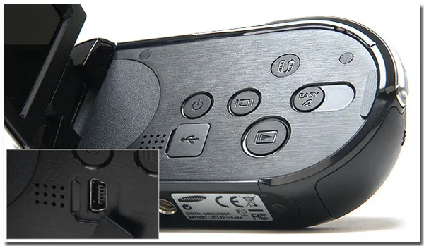 우측면 내부의 모습으로 다양한 버튼이 부착되어 있다. 전원 버튼을 비롯하여 재생, Easy Q, 화면표시, 공유 버튼이 부착되어 있으며 미니 5핀 단자 및 스피커가 설치된 것을 확인할 수 있다. (전용 충전기를 사용해야 하는 일반 제품들과 달리 C10 의 경우 USB 충전 기능을 지원한다. 호환성이 뛰어난 미니 5핀을 장착하여 PC가 있는 곳이라면 어디서나 배터리를 충전하고 데이터를 전송할 수 있는 장점이 있다.)