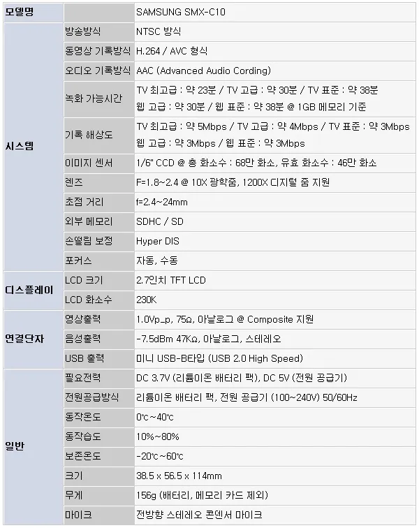 [SAMSUNG SMX-C10 디자인 & 구동 동영상]