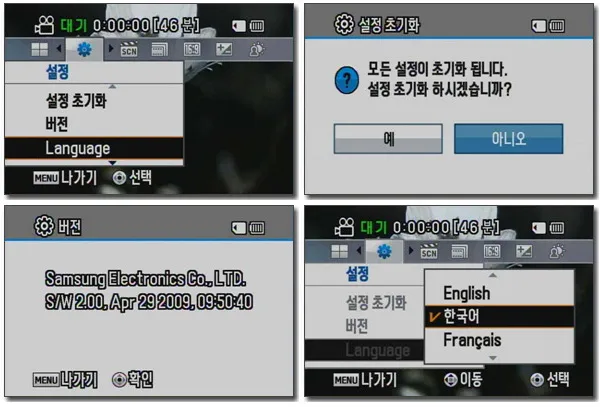 글로벌 기업인 삼성 제품답게 다양한 언어를 지원하며 (총 29개 언어 지원) 설정 초기화 및 버전 확인도 가능하다.