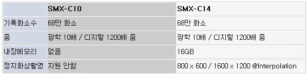 @ 리뷰를 진행하고 있는 SMX-C10 의 경우 사진 촬영 기능을 지원하지 않는다. 하지만 동시에 출시될 SMX-C14 의 경우 사진 촬영 기능을 지원할 뿐만 아니라 16GB 의 내장 메모리도 지원되어 보다 편리하게 촬영을 진행할 수 있다.
