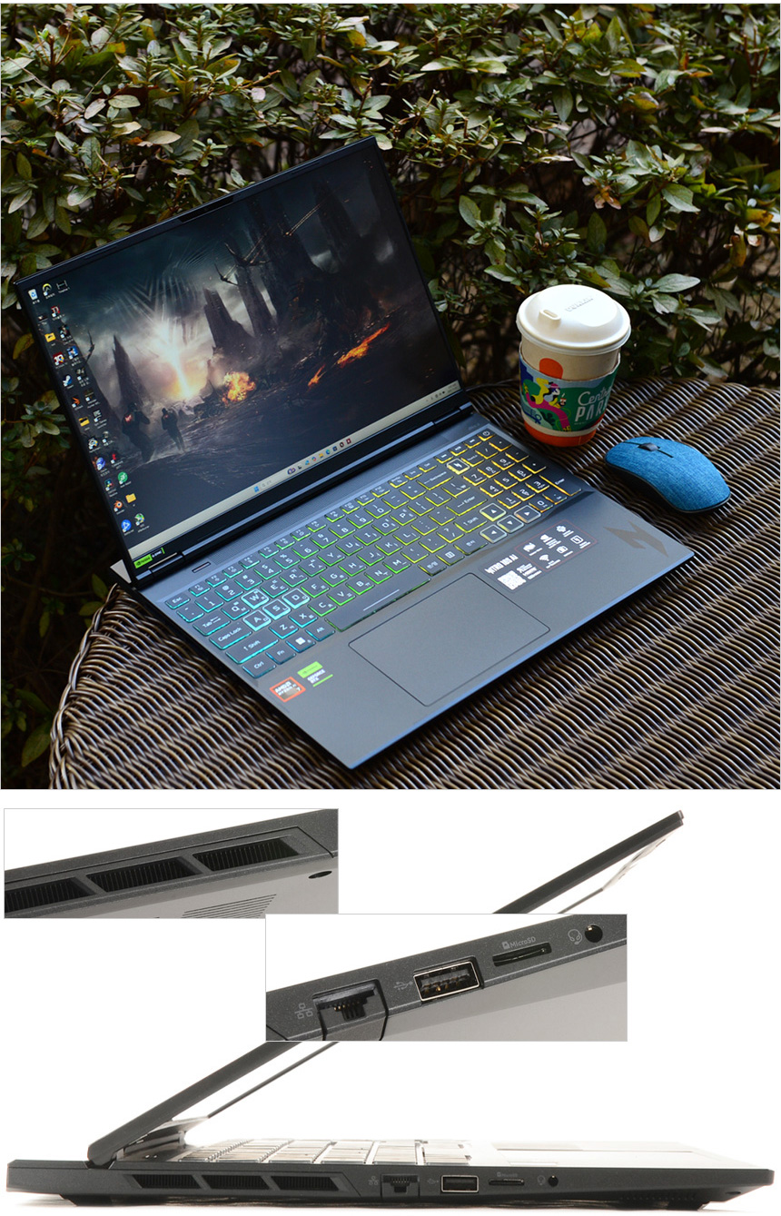 디테일이 살아있는 선명한 디스플레이 탑재도 장점이라 할 수 있다. 180Hz 주사율을 지원해 작은 차이도 구분할 수 있는 FPS 게이머 들이 부드럽게 게임을 즐길 수 있으며 16형 대화면 지원으로 탁 트인 시원한 영상을 즐길 수 있다. 또한 300nits 의 높은 밝기를 지원해 야외에서도 높은 시인성을 경험할 수 있었으며 16:10 비율 지원으로 작업을 편하게 실행할 수 있었다.