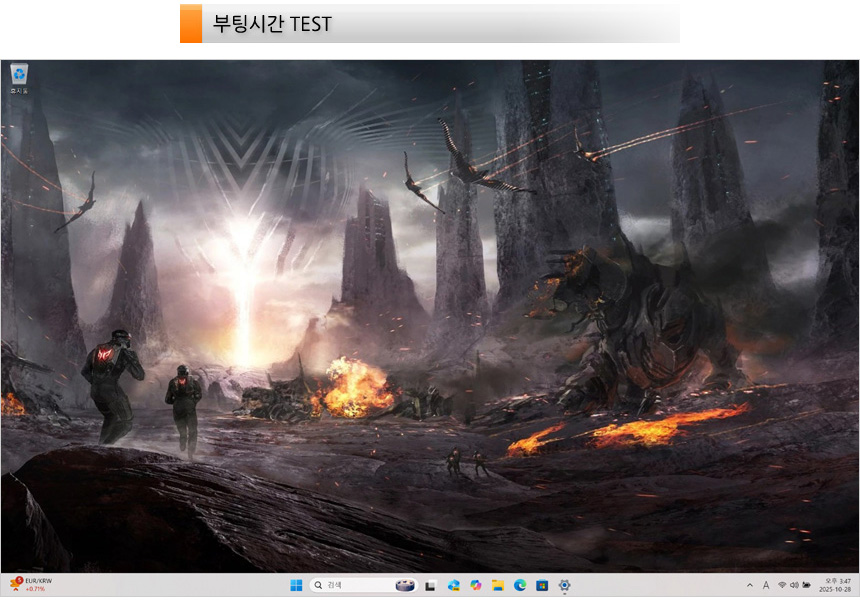 노트북이 완전히 꺼진 상태에서 전원 버튼을 눌러 바탕화면이 노출될 때 까지의 시간 (콜드부팅) 을 측정했는데 16.5초가 소요되었다.
