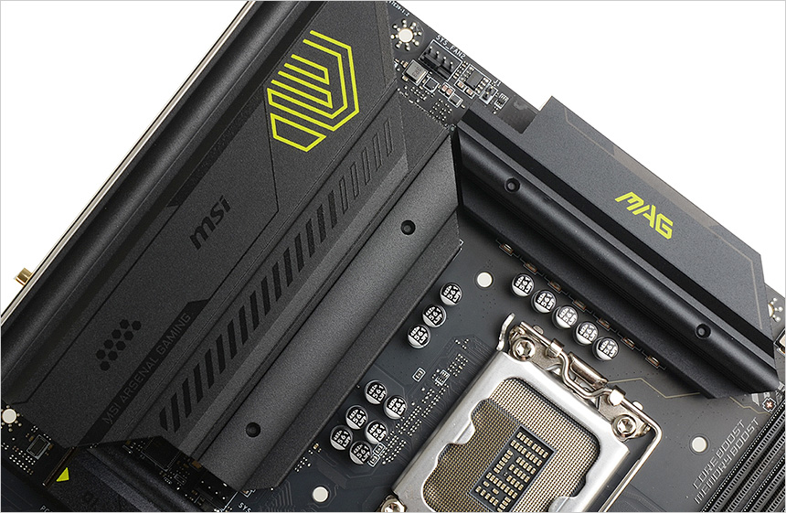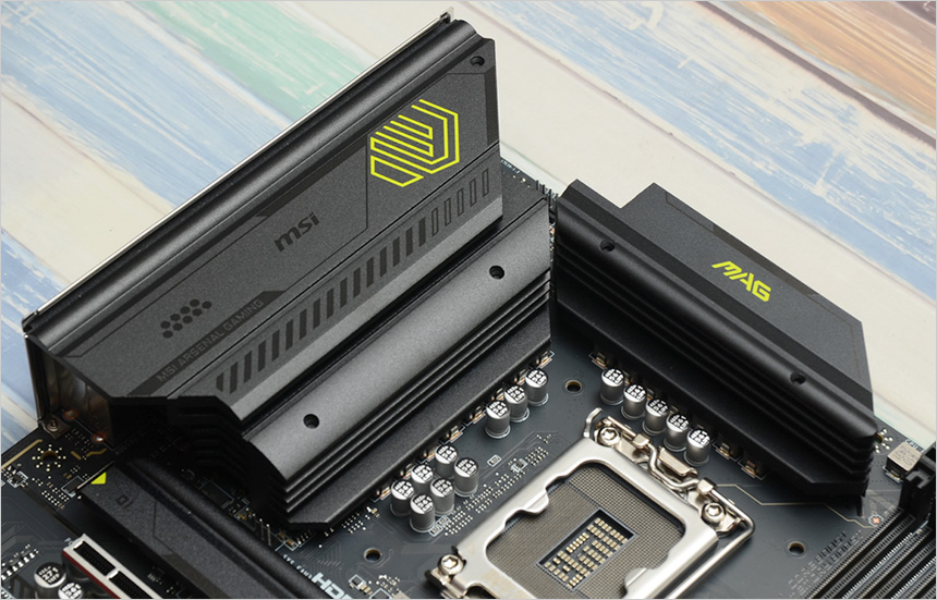 3개의 M.2 슬롯을 지원해 여유롭게 저장장치를 추가할 수 있다. 첫 번째 M.2 슬롯에는 M.2 쉴드 프로저가 장착되어 (밀착력을 높이기 위해 써멀패드도 부착되어 있다.) 열이 많은 PCIe NVMe SSD의 열을 효과적으로 제어하며 툴리스 방식을 적용해 손쉽게 방열판을 탈부착 할 수 있다. (나머지 두 개 M.2 슬롯을 덮고 있는 쉴드 프로저는 드라이버로 분리해야 한다.)