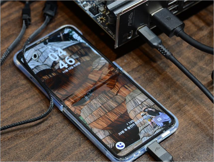 썬더볼트 4 단자는 40Gbps 초고속 데이터 전송이 가능할 뿐만 아니라 15W 파워 딜리 버리를 지원해 스마트폰 충전용으로 사용할 수 있다.