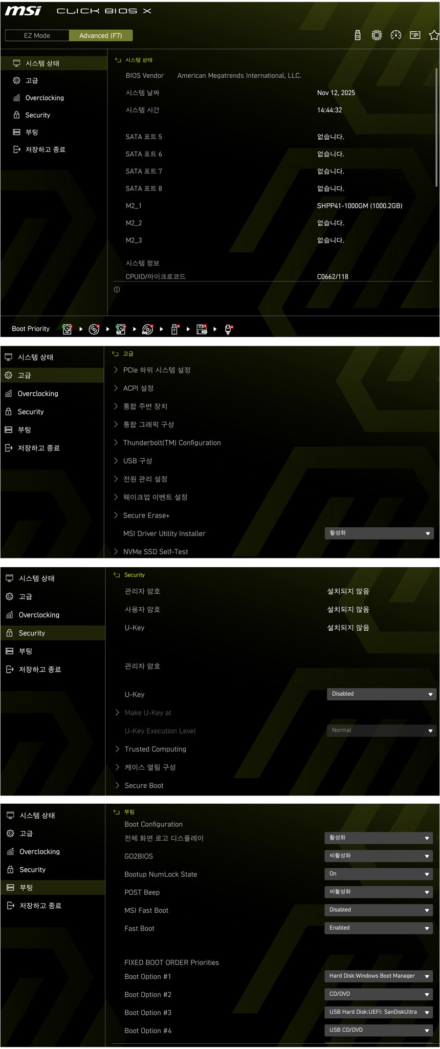 바이오스의 모습으로 EZ 모드에서 중요 기능을 손쉽게 설정하고 시스템을 모니터링 할 수 있도록 인터페이스가 구성된 것을 확인할 수 있다. AI 부스트, 메모리 XMP 등을 손쉽게 활성화 할 수 있으며 Memory Try It 지원으로 메모리 클럭도 오버클럭 메뉴에 들어가지 않고 편하게 조정할 수 있었다.