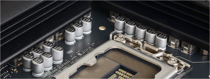 이 제품의 가장 큰 장점은 최상급 CPU도 안심하고 사용할 수 있는 높은 안정성이라 할 수 있다. 12+1+1+1 페이즈의 디지털 전원부로 구성되어 있어 CPU 의 최대 성능을 유지하면서도 안정적으로 사용할 수 있으며 7W/mK 써멀패드와 대형 히트싱크가 기본 장착되어 전원부에서 발생하는 열을 효과적으로 식혀준다.
