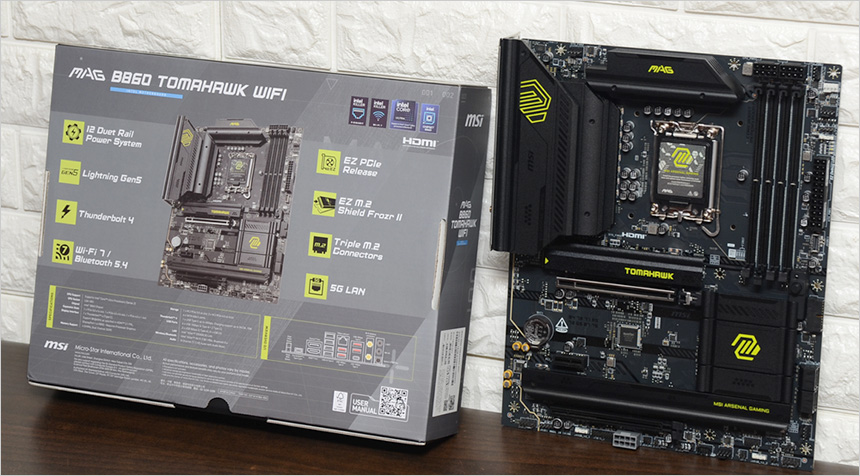 이번에 리뷰를 진행 할 MSI MAG B860 토마호크 WIFI 는 장시간 높은 성능으로 작동하는 게이밍 PC나 작업용 PC를 안정적으로 구동할 수 있는 고급형 메인보드로 보급형 B860 칩셋 메인보드 들과 달리 서버 등급의 PCB 설계와 12+1+1+1 로 강화된 디지털 전원부, 향상된 쿨링 솔루션 적용으로 보급형 CPU는 물론 인텔코어 울트라 265K 나 285K 와 같은 고성능 모델들을 장착해 안심하고 사용할 수 있다.