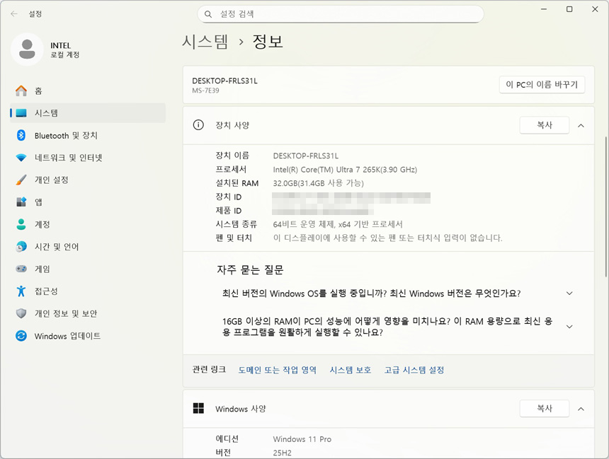 특히 인텔코어 울트라 200S 프로세서는 구형 시스템 대비 3D 성능이 대폭 향상되었다. (LOL 과 같은 캐주얼한 온라인 게임은 부드럽게 플레이 할 수 있다.) 내장그래픽 기반에서도 더 편하게 PC를 사용할 수 있을 것이다.