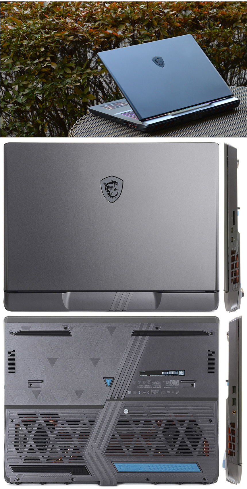 노트북 디자인은 MSI 프리미엄 게이밍 노트북 답게 상당히 고급스러운 것을 확인할 수 있다. 근육질의 운동선수를 연상시키는 특유의 볼륨감이 인상적이었으며 메탈 섀시를 사용해 내구성을 한층 높였다. 특히 지문이나 먼지가 잘 묻어나지 않아 깔끔하게 노트북을 관리할 수 있으며 키보드의 RGB 백라이트 적용, 삼각 패턴 & 블루컬러 포인트 등을 적용한 바닥면 설계로 일반 노트북과 차별화를 꾀했다.