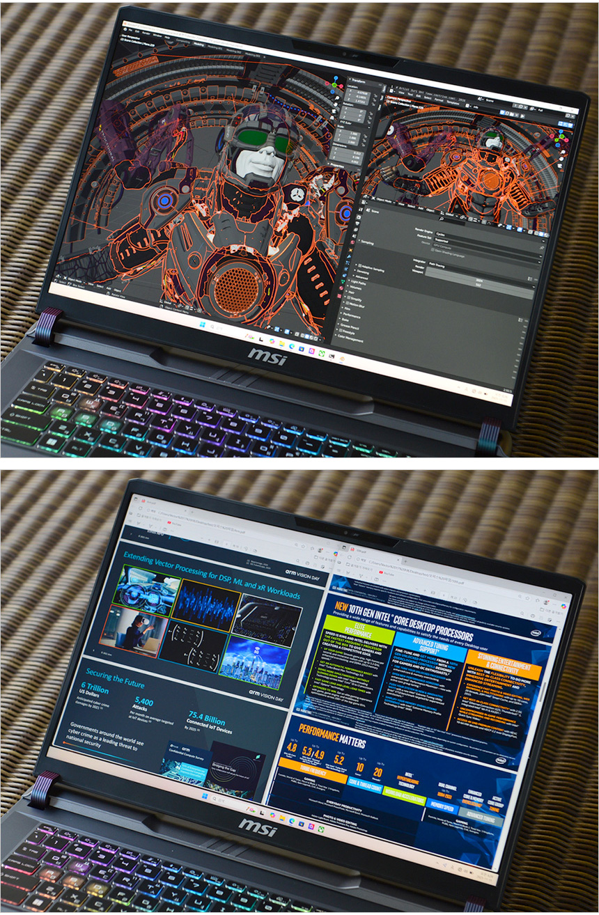 HDMI 뿐만 아니라 2개의 썬더볼트 5 단자도 영상 출력을 지원해 총 3개의 디스플레이를 사용할 수 있다. 다중창 사용이 필수적인 업무나 학습용으로도 유용하게 활용할 수 있으며 4K 모니터 연결도 가능해 전문작업도 용이하게 실행할 수 있다. (3개의 디스플레이를 활용하고자 할 경우 MSI 센터에서 그래픽을 MS하이브리드로 설정하기 바란다.)