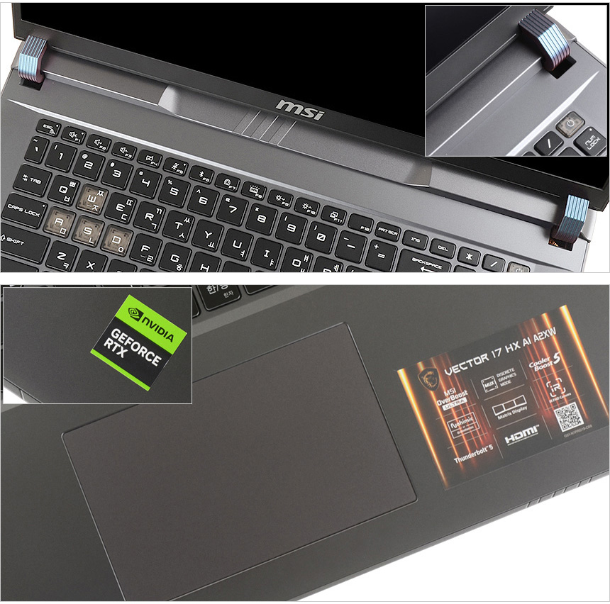 이번에 리뷰를 진행 할 MSI 벡터 17 HX AI A2XWJG-U9 QHD+ WIN11 은 퍼포먼스에 특화된 프리미엄 게이밍 노트북으로 인텔 코어 울트라 9 프로세서 275HX와 지포스 RTX 5090, 64GB DDR5 메모리 탑재로 일반 게이밍 노트북을 압도하는 성능을 경험할 수 있다. 특히 이 제품은 최대 250W MSI 오버부스트 기술이 적용되어 있으며 외장그래픽 만으로 작동할 수 있도록 MUX 스위치도 지원해 노트북의 최대 성능을 끌어낼 수 있다.