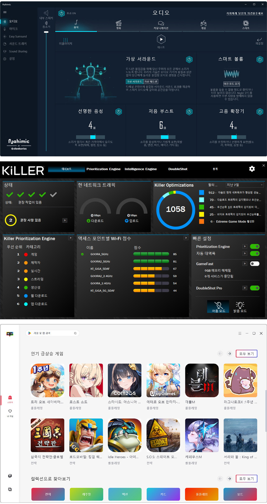윈도우키와 키보드 백라이트, USB 상시전원 등을 설정할 수 있으며 시스템 업데이트 지원으로 최신의 컨디션을 유지할 수 있다. 또한 복구 기능 지원해 랜섬웨어나 기타 해킹등으로 문제가 발생했을 때 빠르게 시스템을 복원할 수 있다. 또한 시스템 모니터링을 지원하며 노이즈 캔슬링과 미스틱 라이트 (조명) 설정도 가능한 것을 확인할 수 있다.