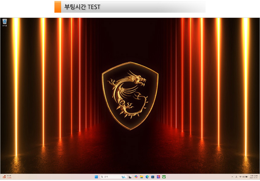 노트북이 완전히 꺼진 상태에서 전원 버튼을 눌러 바탕화면이 노출될 때 까지의 시간 (콜드부팅) 을 측정했는데 19초가 소요되었다.