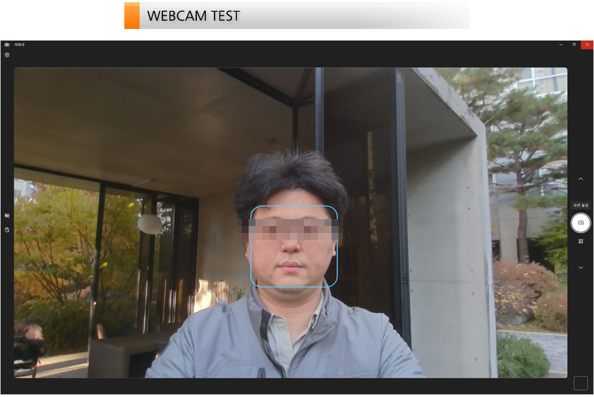 FHD 웹캠의 화질을 테스트 하고 있는 모습으로 HD 웹캠과는 확연히 비교되는 선명도와 디테일을 보여주었다. 화상회의나 게임방송 용으로 충분히 활용할 수 있을 것이다. (노출의 영향을 많이 받기 때문에 가능하면 밝은 장소에서 사용하기 바란다.)