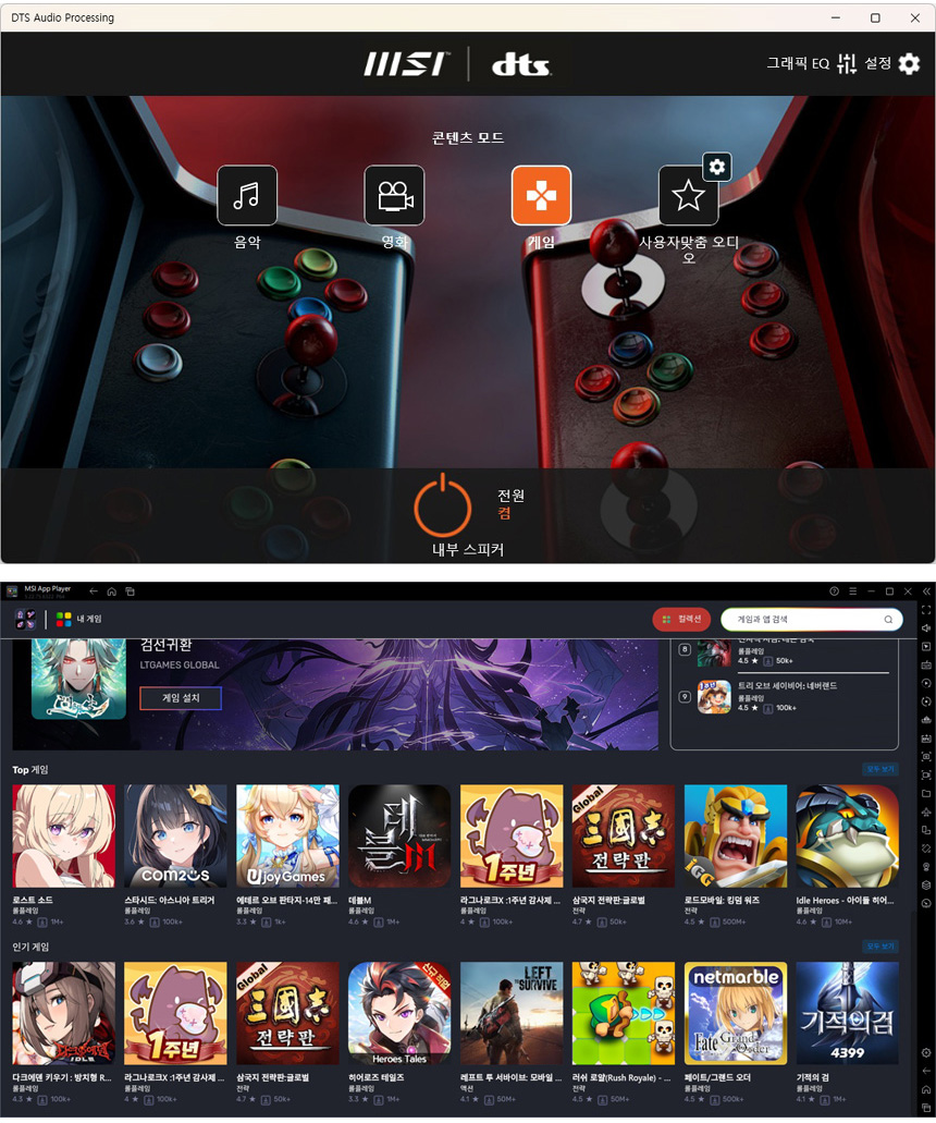 DTS 오디오 지원으로 사용자에 맞는 최적의 음색을 설정할 수 있다. 또한 MSI App 플레이어 지원으로 안드로이드 스마트폰에서 사용하던 앱이나 게임을 노트북에서 즐길 수 있다.