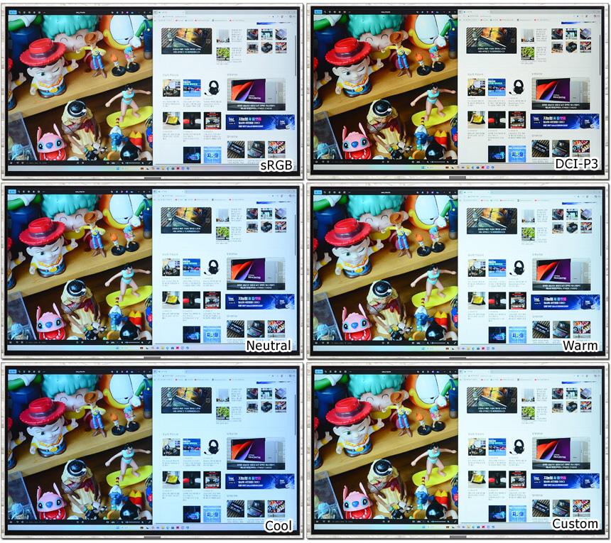 색온도 설정 기능도 제공해 선호하는 색감을 지정해 사용할 수 있다. (커스텀 모드를 지원해 미세한 색온도 설정도 가능하다.)