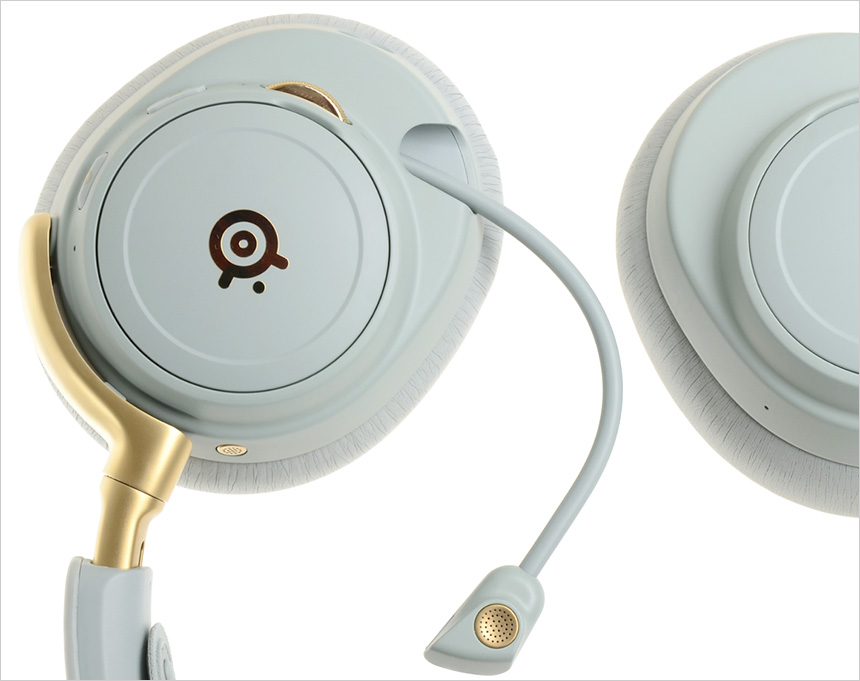 귀를 보호하는 이어패드는 분리가 가능해 장시간 사용후 손쉽게 교체할 수 있다. 매쉬재질 대비 부드러운 마감재를 사용해 귀에 착용했을 때의 느낌이 상당히 좋은 편이며  뛰어난 쿠션감으로 장시간 착용했을 때 머리나 귀의 통증을 최소화 한다. 또한 귀를 완전히 덮도록 설계되어 외부 소음을 효과적으로 차단한다. (스틸시리즈 홈페이지에서 다양한 이어패드를 판매하고 있다.)
