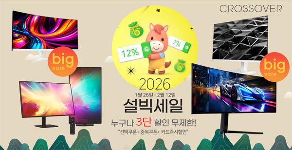 크로스오버는 자사의 인기 포터블, 게이밍, 고해상도 모니터들을 대상으로 2026 옥션 지마켓 설 빅세일 특가전을 펼친다고 밝혔다.