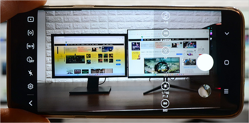 시야각 테스트를 진행하고 있는 모습으로 극단적인 각도에서도 선명한 영상을 구현하는 것을 확인할 수 있었다. IPS 패널 답게 TN이나 VA 패널과는 확연히 다른 선명함을 경험할 수 있을 것이다.