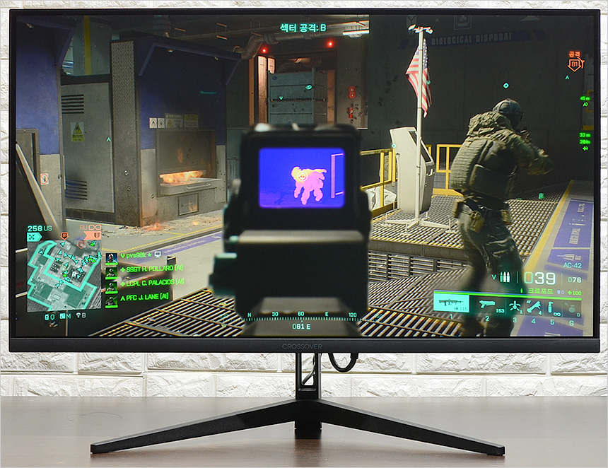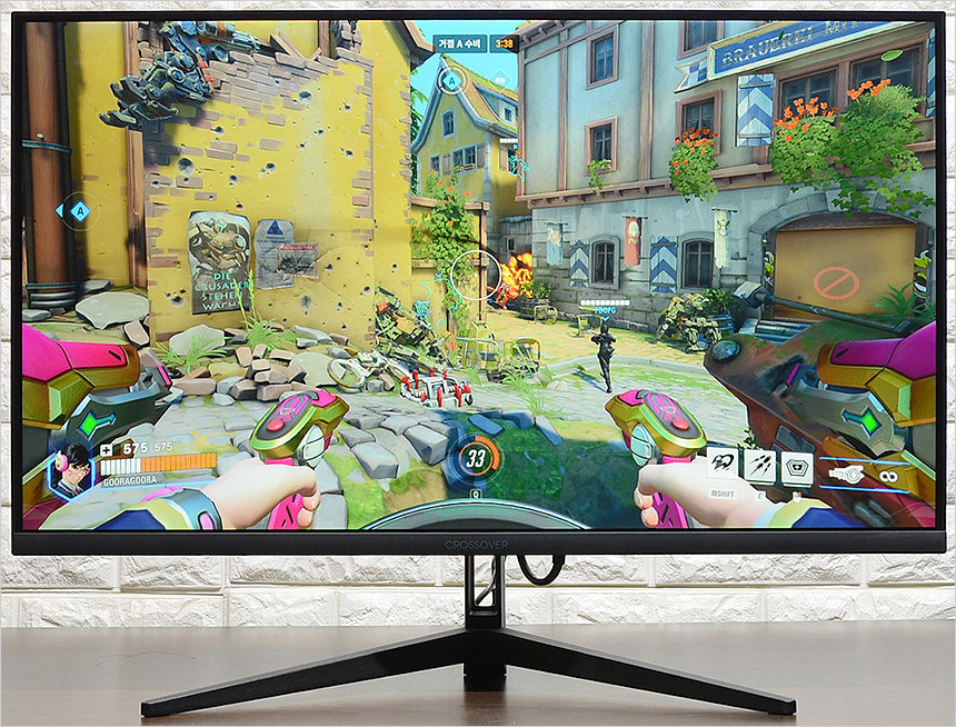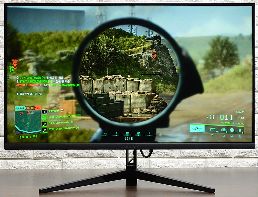오버워치2와 배틀필드 2042를 이용해 게임 테스트를 진행하고 있는 모습으로 144Hz 주사율 특유의 부드러운 움직임이 확연히 느껴졌으며 1ms 응답속도를 지원하는 모델답게 잔상으로 인한 스트레스도 없었다. 일부 보급형 모델들과 달리 밝기가 상당히 높아 암부에서도 정확하게 캐릭터를 구분할 수 있었으며 조준선 지원으로 보다 정밀한 사격이 가능했다. 또한 IPS 패널 특유의 선명함도 무척 마음에 들었다. 보급형 게이밍 모니터와는 확연히 다른 화질을 보여주는 제품이다.
