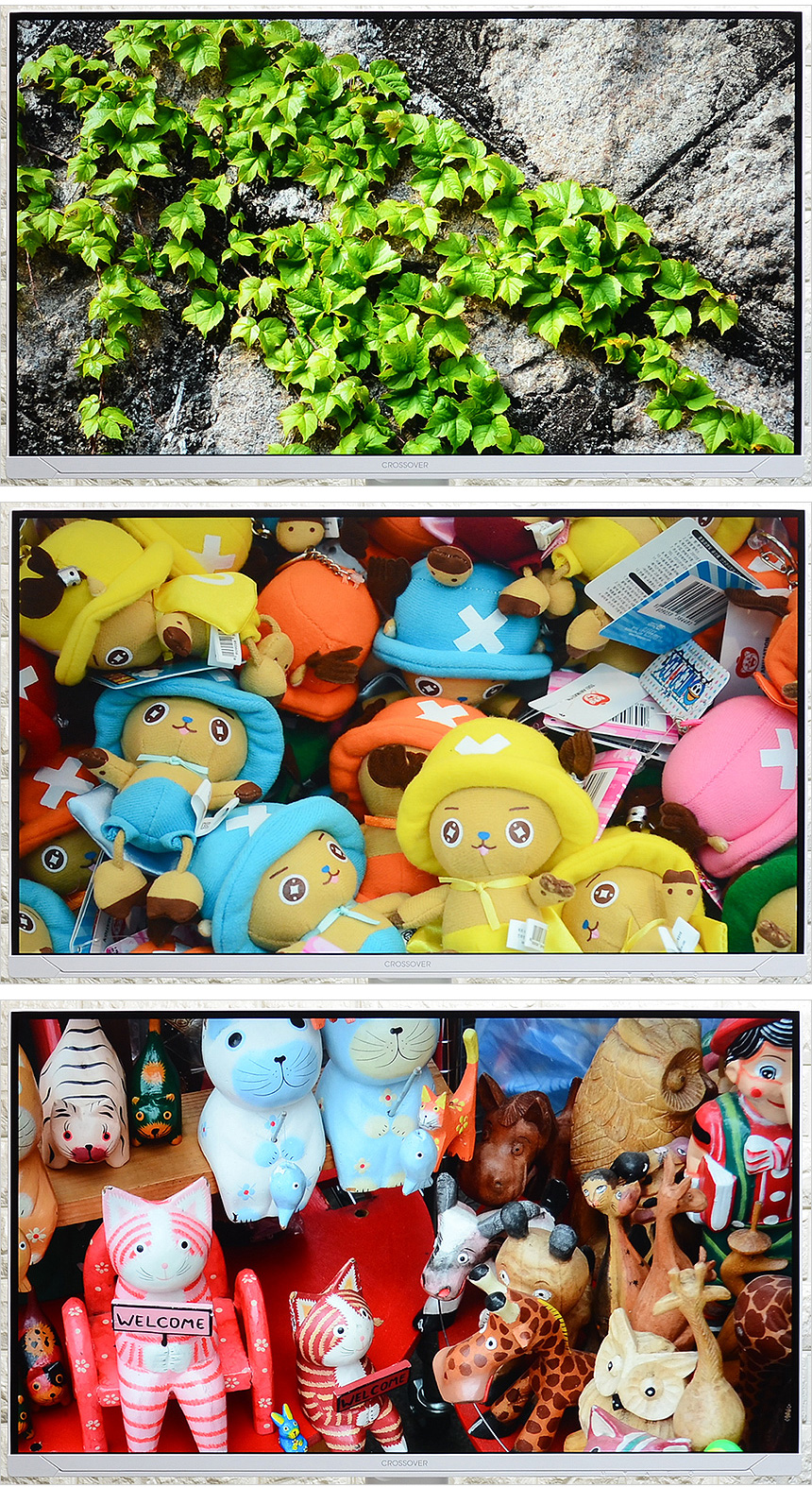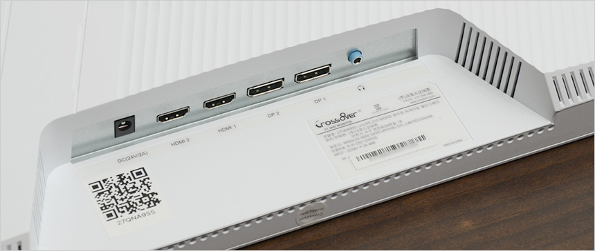 모니터 하단부의 모습으로 크로스오버 로고가 중앙에 세겨져 있으며 하단에는 OSD 버튼이 장착되어 모니터의 주요 기능을 손쉽게 조작할 수 있다. 또한 통풍구가 설치되어 있고 두 개의 3W 스피커가 장착되어 시원한 사운드를 즐길 수 있다.