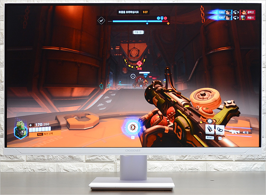 오버워치 2, 배틀필드 2042 등의 FPS 게임을 이용해 성능 테스트를 진행하고 있는 모습으로 (옵션을 낮춰 프레임을 최대한 확보했다.) 실제와 같은 자연스러운 움직임을 보여주어 편하게 캐릭터를 컨트롤 할 수 있었다. (144Hz 와는 분명한 차이를 경험할 수 있을 것이다.) 빠른움직임시 순간적으로 잔상이 발생하거나 밀리는 느낌을 주는 일반 모니터와 달리 장시간 게임을 플레이 했음에도 깔끔한 영상을 보여주어 불편함을 전혀 느끼지 않았다.