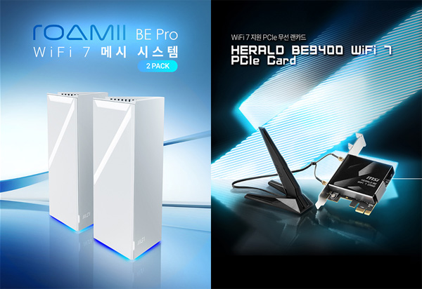 MSI, 메시 유무선 공유기 Roamii BE Pro와 데스크톱용 무선 확장 카드 HERALD BE9400 WiFi 7 PCIe Card 출시