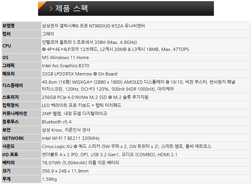 @ 삼성전자 갤럭시북6 프로 NT960XJG-K52A 유니씨앤씨 보러가기
