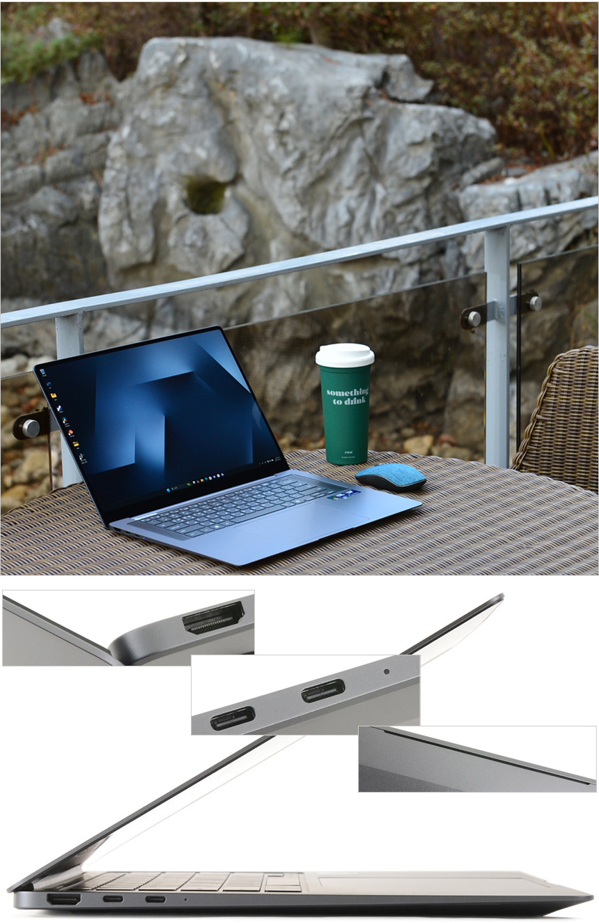 16:10 비율의 16형 대화면 노트북으로 크기가 상당하다. 하지만 3면 슬림베젤 적용으로 크기를 최소화 했을 뿐만 아니라 아주 날렵해 상단에서 언급한 것과 같이 서류가방 등에 편하게 넣고 다닐 수 있다. 특히 동급 최강의 긴 배터리 사용시간을 지원할 뿐만 아니라 PD충전도 가능해 배터리 걱정없이 외부에서 사용할 수 있는 장점을 가지고 있다.