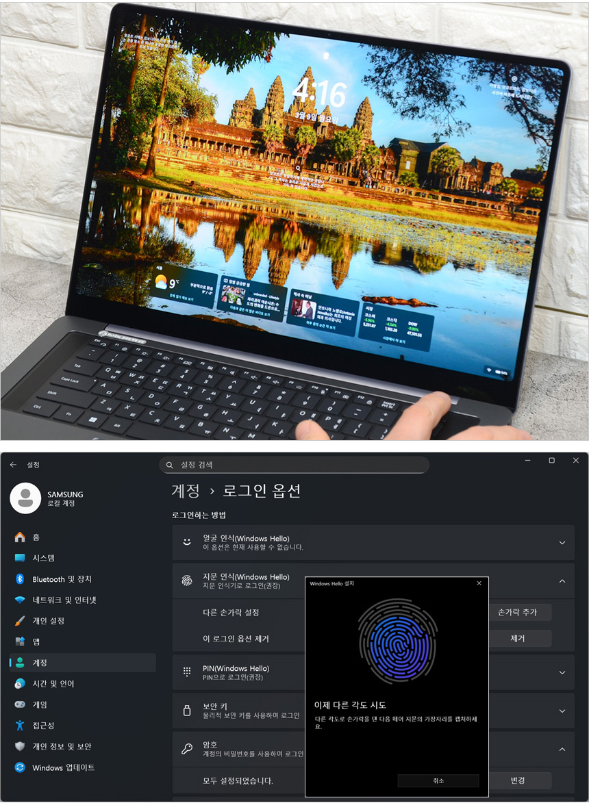 대화면 모델임에도 휴대성이 뛰어난 점 또한 칭찬하고 싶다. 제품 자체가 대단히 날렵해 서류가방에 넣고 다니는 것이 가능했으며 (일반 16형 노트북은 백팩을 사용해야 한다.) 무게도 부담스럽지 않아 장시간 들고 다녀도 피로감이 크지 않았다. 특히 이 제품은 지문인식을 지원해 외부에서도 중요 데이터를 안전하게 관리할 수 있다.